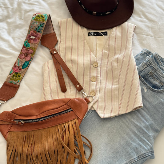 Sling Bag Emma with fringes + Patagonia Strap in Caramel by SONO Handmade