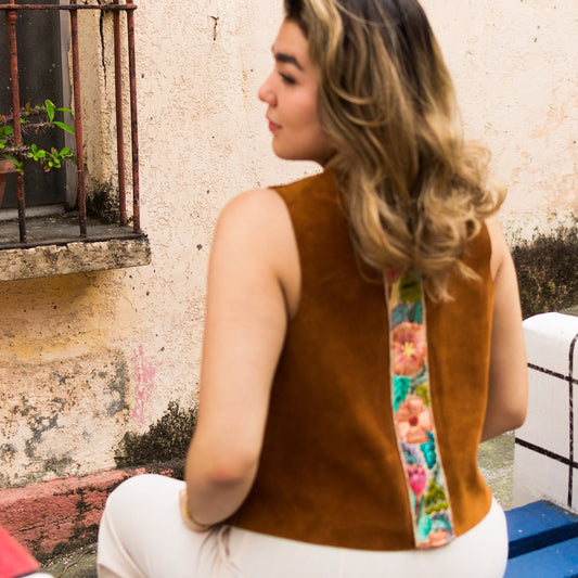 Cordoba Suede Top in Caramel + 1/2 Embroidered Strap Mostar