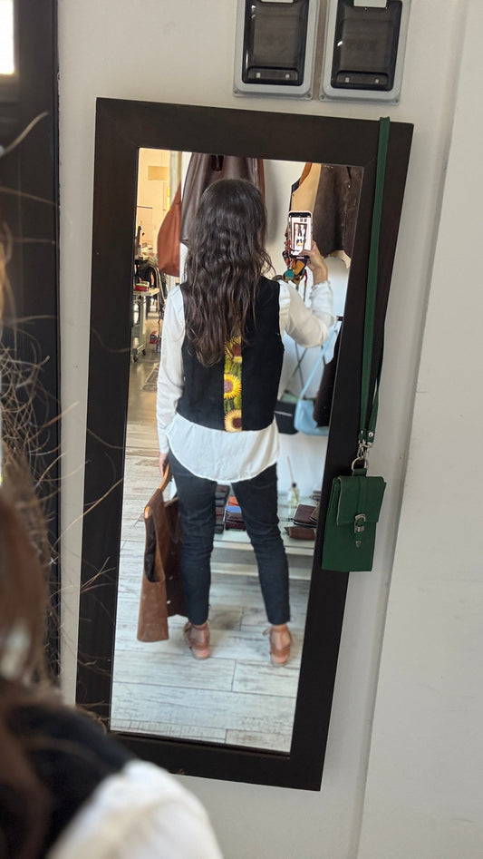 Argentina Suede Top in black + 1/2 Embroidered Strap