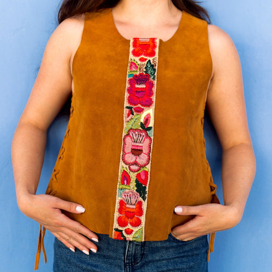 Cordoba Suede Top in Caramel + 1/2 Embroidered Strap