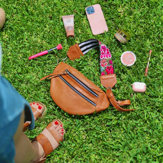 Top de Cuero Gamuza Argentina + 1/2 Correa Bordada Praga