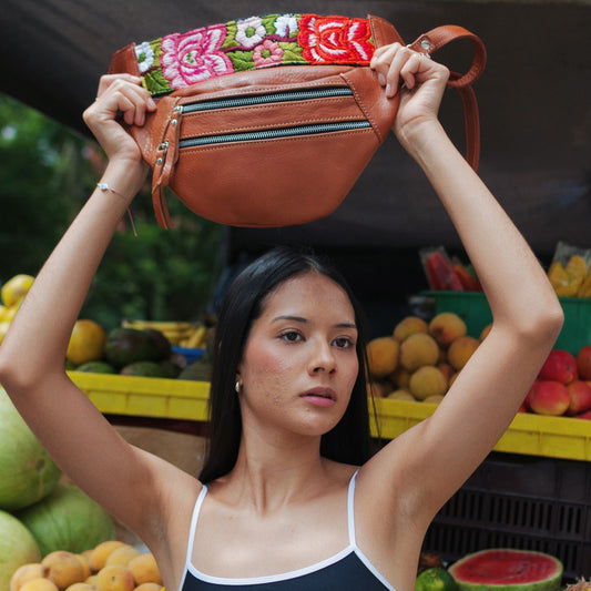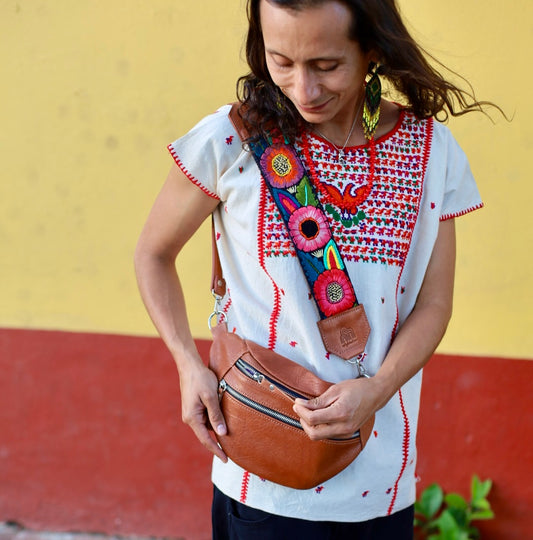 Riñonera Emma + Correa Corta Lago Atitlán en Caramelo