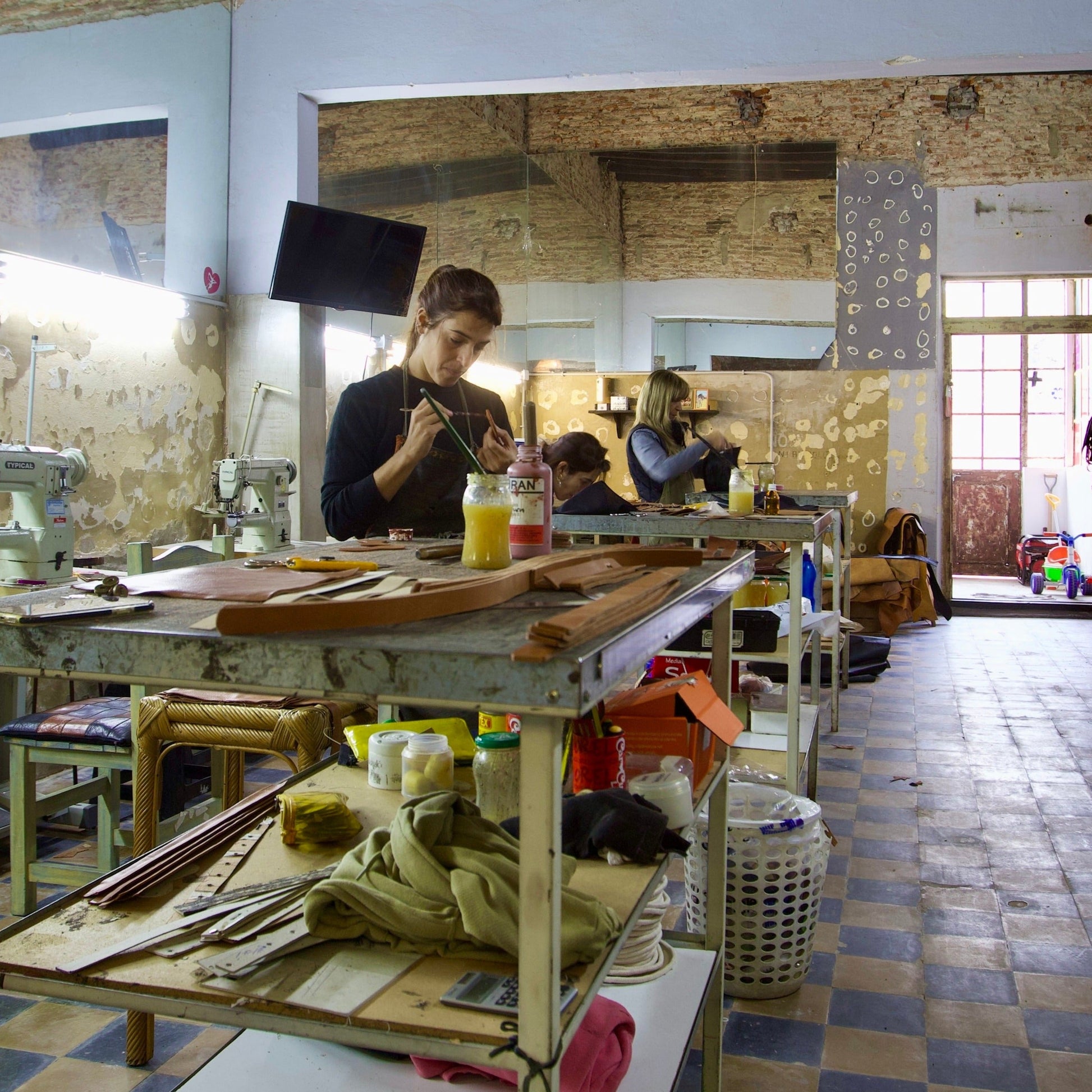 Nuestro pequeño taller en Argentina trabaja cuidadosamente el cuero a través de un proceso de curtido vegetal. Se trata de un cuero de primera calidad curtido sin el uso de productos químicos nocivos como el cromo. Queremos minimizar el impacto ambiental mientras trabajamos nuestros productos de cuero.