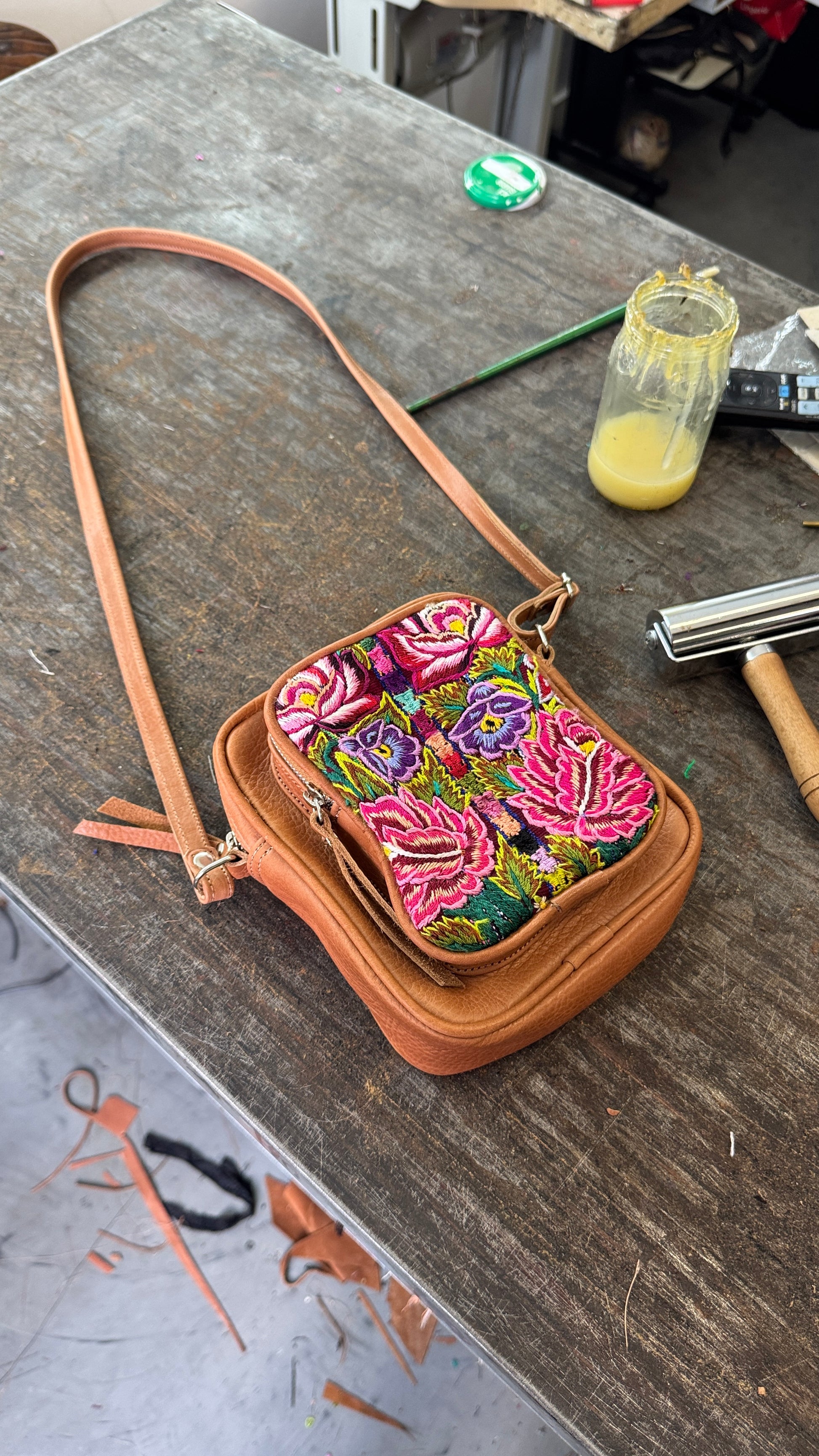 Our NEW Chule Crossbody Huipil Bag has been handcrafted with vegetal tanned leather from Argentina and a traditional second hand huipil from the village of Patzún, Guatemala. This colourful pattern was originally created on a back-strap loom and feature hand-embroidery by a community of women in Guatemala. No two bags are the same!